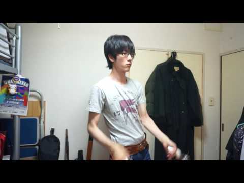 Impressive, this Japanese gunslinger's slinging skills, despite the distinctly non-Western setting. And he's in Japan -- where gun laws are very strict -- so he has to practice with toy pistols.